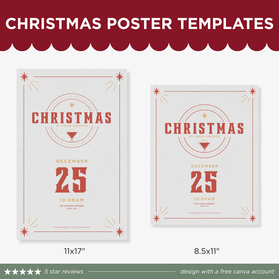Don't stress about your Church graphics this Christmas! Download our Christmas Church Bundle including 17 different graphics to help you spread the word for Christmas at your church this year. All templates are created in a free Canva account and are fully editable by you!