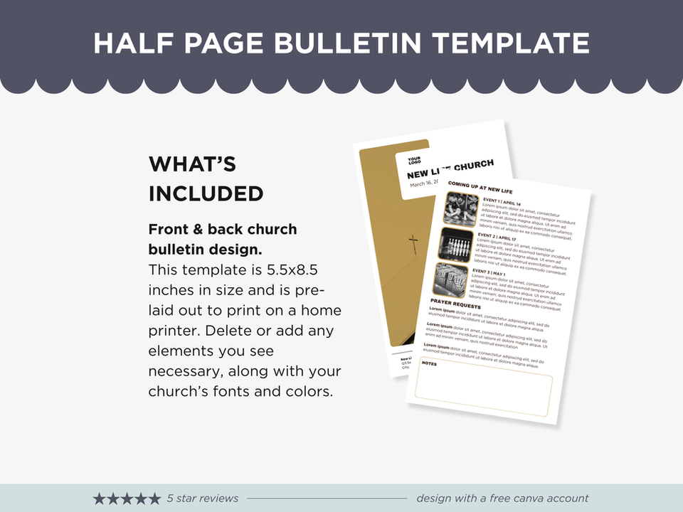 Half Page Church Bulletin Template